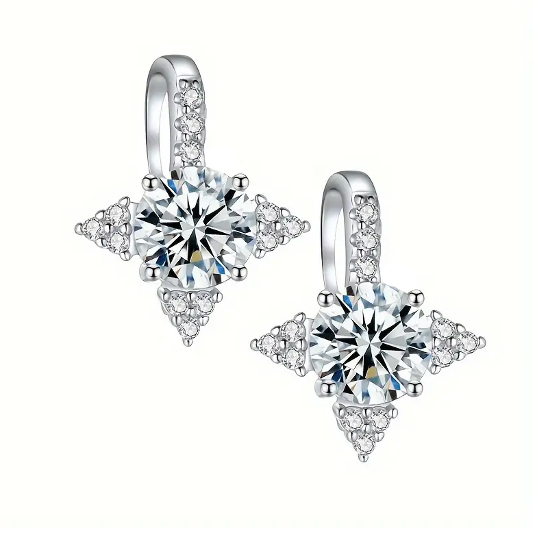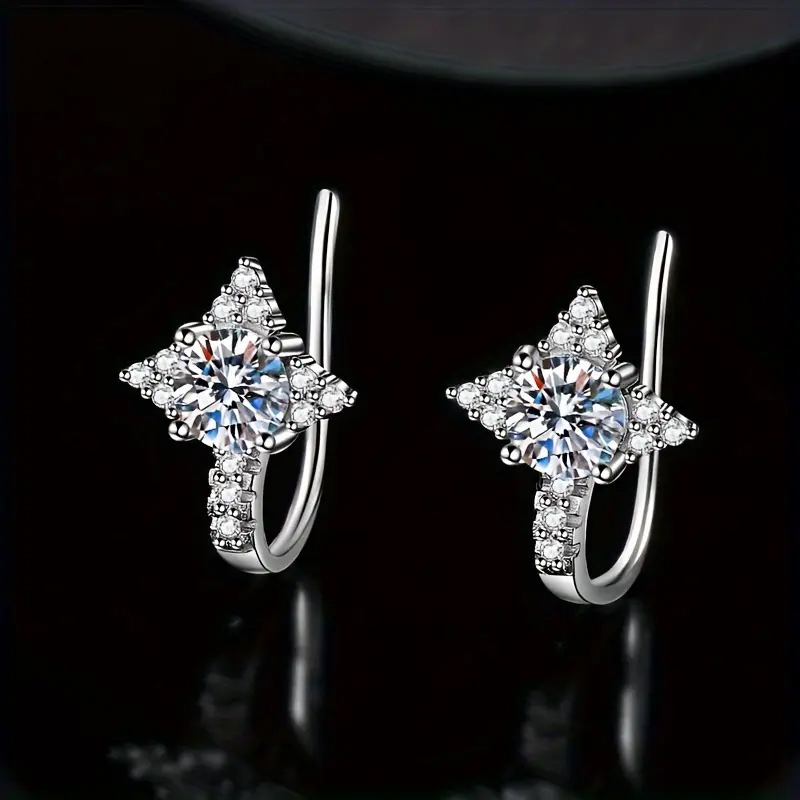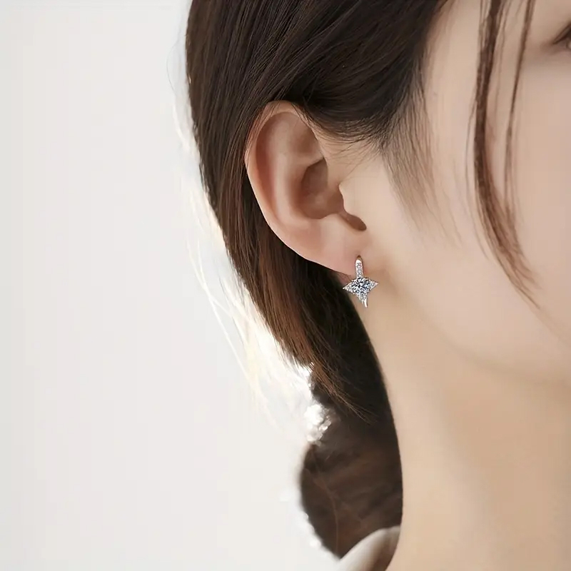 Adauga o nota de rafinament si stralucire fiecarei aparitii cu acesti cercei eleganti din argint 925, impodobiti cu diamante moissanite de 0.5 ct. Forma delicata de stea, incrustata cu pietre fine, reflecta lumina in mod spectaculos, oferind un efect sclipitor si sofisticat.
