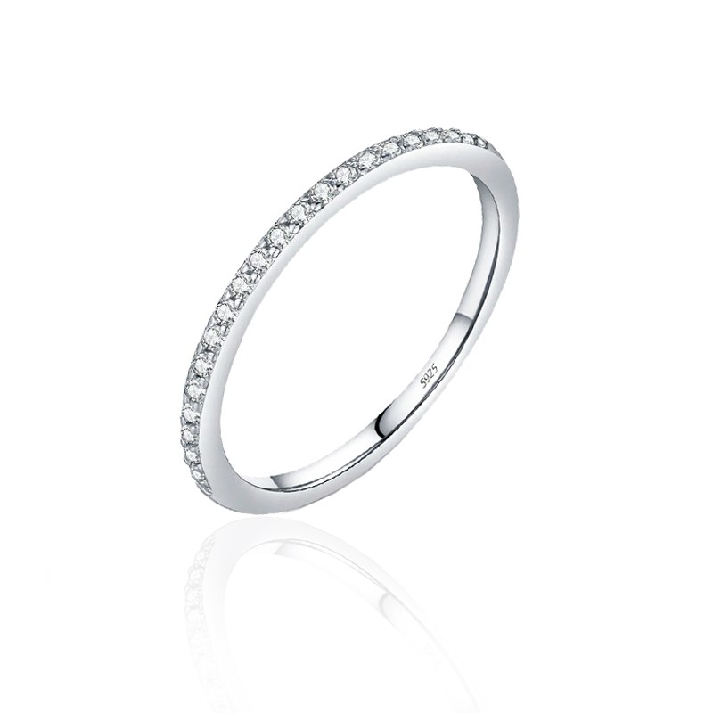 Un inel clasic si elegant, realizat din argint 925, decorat cu 20 de diamante moissanite de 0.02 carate fiecare. Fiecare piatra este atent montata pentru a crea un efect de stralucire continua, care capteaza lumina din orice unghi.