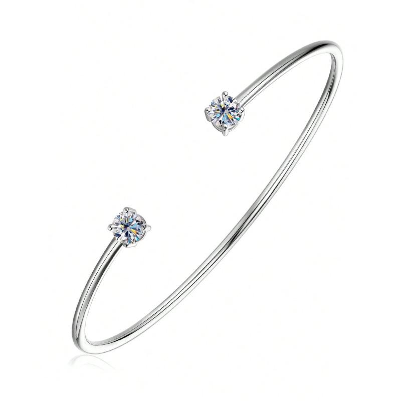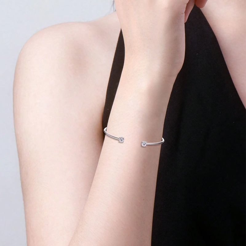 Rafinata si stralucitoare, aceasta bratara bangle este realizata din argint 925 de inalta calitate si impodobita cu diamante moissanite cu o greutate totala de 0.5 carate. Designul sau minimalist si elegant o transforma intr-o piesa versatila, perfecta atat pentru ocazii speciale, cat si pentru purtarea de zi cu zi.