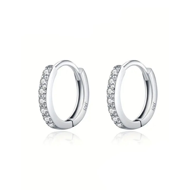 Adauga un plus de rafinament colectiei tale de bijuterii cu acesti cercei tip cerc, fin lucrati din argint 925 si impodobiti cu 14 diamante Moissanite stralucitoare (0.005 ct fiecare). Cu un design clasic si atemporal, acesti cercei sunt perfecti atat pentru tinutele de zi cu zi, cat si pentru ocazii speciale.