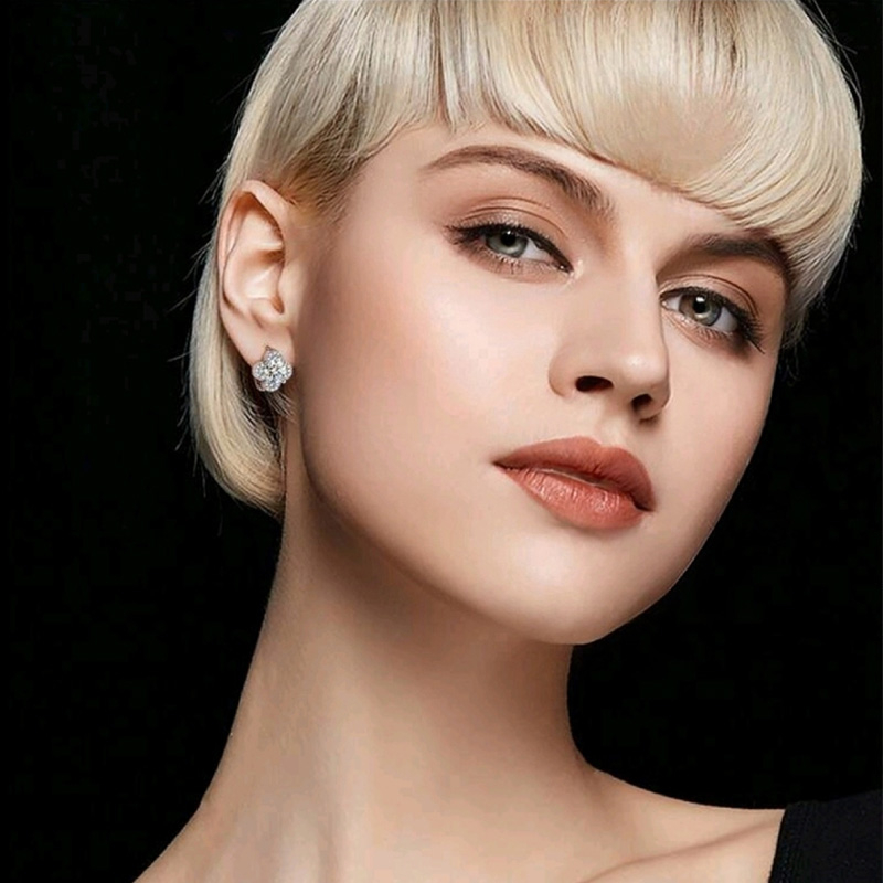 Descopera eleganta atemporala cu acesti cercei din argint cu diamante moissanite, creati pentru femeile care apreciaza rafinamentul si stralucirea pura. Designul floral pune in valoare piatra centrala moissanite, cunoscuta pentru luciul sau superior si claritatea impresionanta. Petalele incrustate cu pietricele fine adauga un plus de feminitate si glamour, transformand acesti cercei intr-o piesa remarcabila pentru orice tinuta.