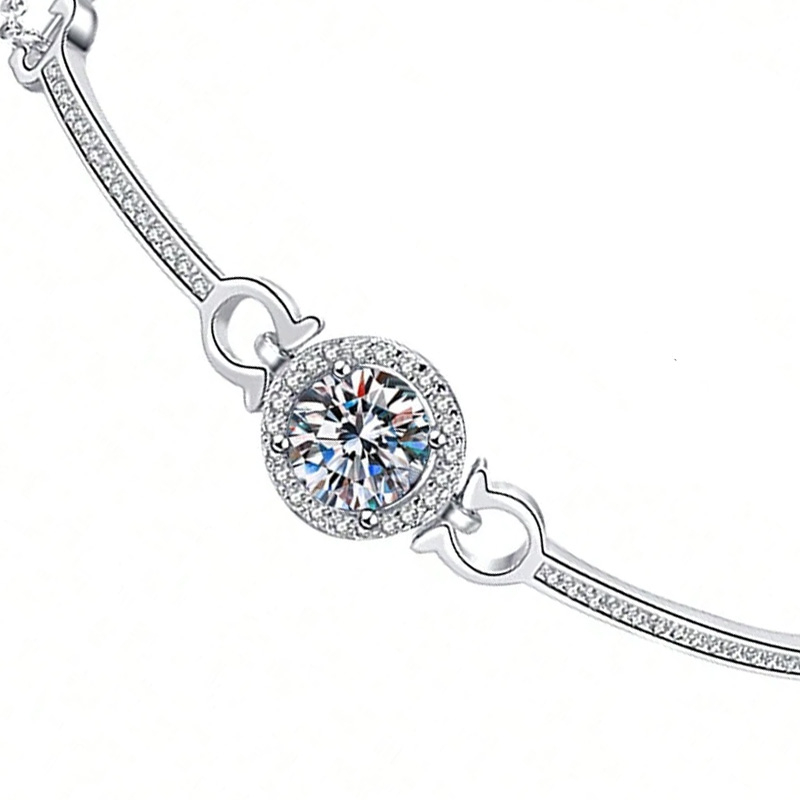 Eleganta si rafinament intr-o singura bijuterie. Aceasta bratara este realizata din argint 925 de inalta calitate si este decorata cu un diamant Moissanit rotund de 1 carat, cu o stralucire impresionanta. Designul simplu si modern o face perfecta atat pentru tinute de zi, cat si pentru ocazii speciale. Un cadou ideal pentru persoana iubita sau un rasfat binemeritat.