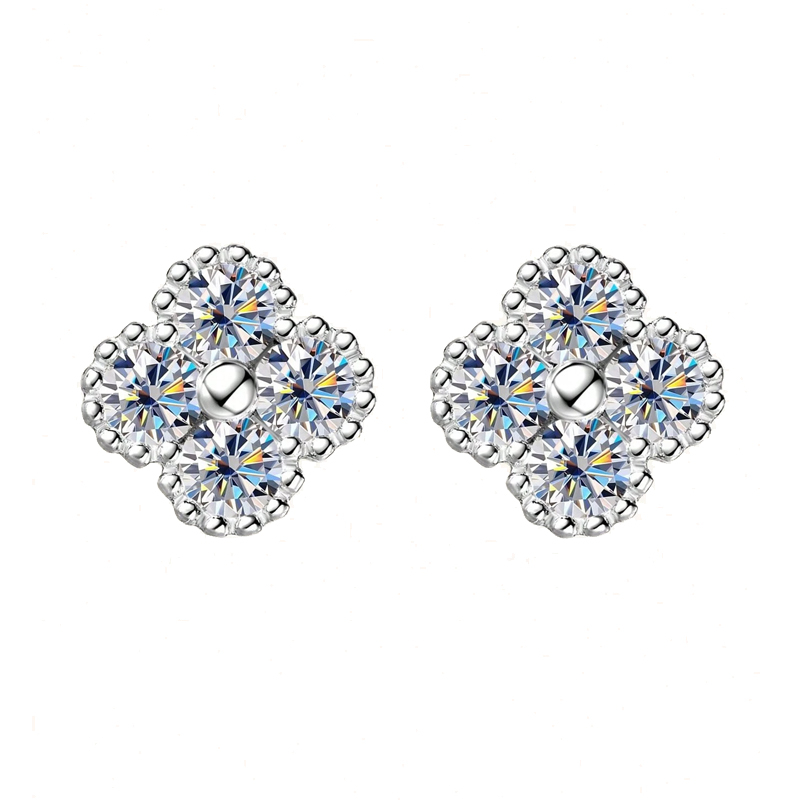Cercei trifoi din argint cu diamante moissanite 0.4 Kt