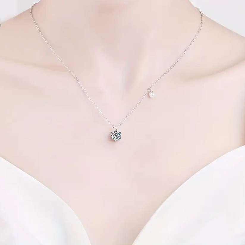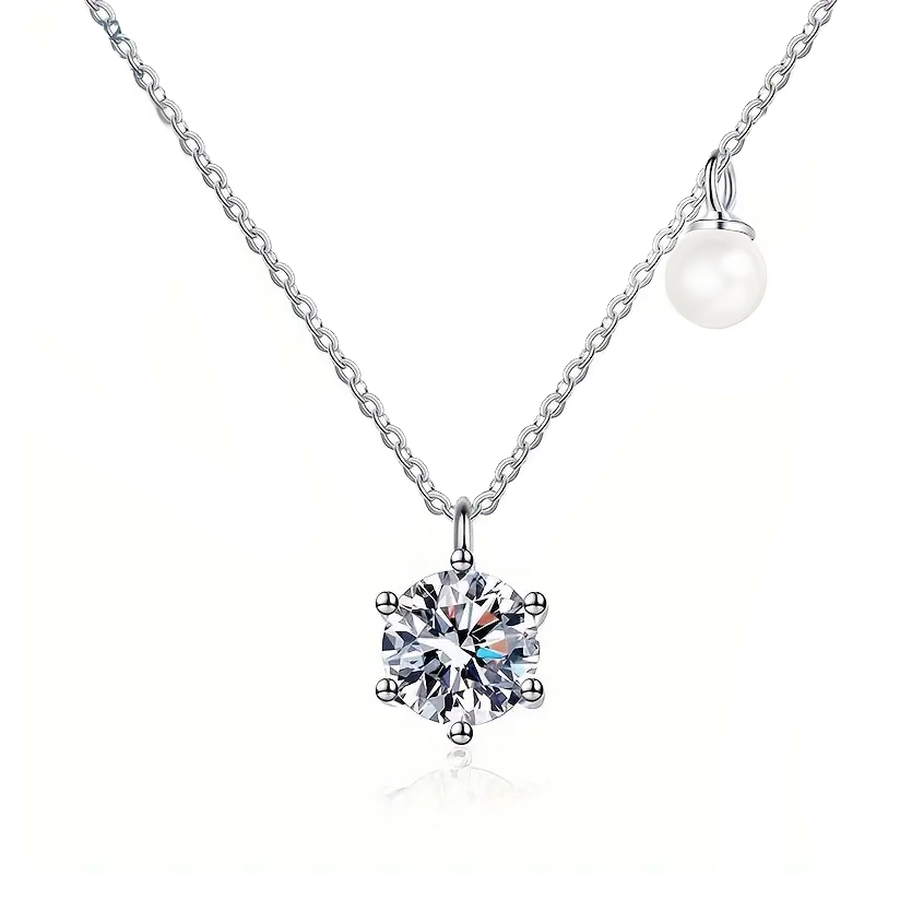 Rafinat si atemporal, acest colier este realizat din argint 925 si evidentiat de un diamant moissanit stralucitor de 0.5 carate, perfect taiat pentru a capta lumina in fiecare miscare. Alaturi, o delicata perla alba naturala adauga o nota subtila de feminitate si eleganta. Designul sau minimalist, dar sofisticat, il face ideal atat pentru tinutele de zi, cat si pentru ocazii speciale. Un accesoriu esential pentru colectia oricarei iubitoare de bijuterii fine.
